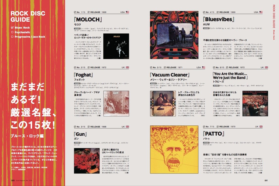 "ディグる"??この言葉は"曲を探す行為"のことを指す。ギターの新たな可能性は、自分の知らない過去の音を探る旅から始まるのである。ということで、本特集『ROCK DIGGERS』がお送りする今月のGMセレクションは、初掲載となる3曲! ジム・マッカーティが在籍するカクタスの1st作から、ブルース・ロック・ナンバー「パーチマン・ファーム」。言わずと知れた巨匠=スティーヴ・ハウの初期衝動を収めた「レボリューション」。そして、イエスのオリジナル・メンバー、ピーター・バンクスがフラッシュを結成して生み出したプログレの名演「スモール・ビギニングス」だ。先人たちのロックでぶっとんだアプローチから、ほとばしるインスピレーションを学び取ろう!