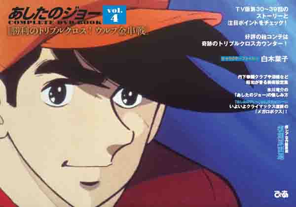 ジョーが本格的にボクシングを始め、大きな盛り上りを見せてくる第4巻は、プロデビューからカウンター対決として有名な名勝負vsウルフ金串戦までの第30〜39話を収録。保存版のブックレットでは、今回も各話ストーリー解説とチェックポイントをトリビアを交えながら紹介し、他にもマニア垂涎の貴重な当時の資料盛りだくさんの内容となっています。