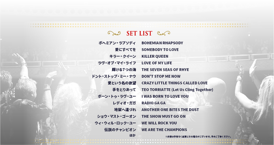 クイーンの音楽はロックでありながら、その普遍的で美しいメロディはクラシックのオーケストラとの親和性も高い。クイーン・シンフォニックはクイーンとクラシックの融合を掲げ、2000年、イギリスで初演。クイーンの人気ミュージカル「WE WILL ROCK YOU」に出演したシンガーとフル・オーケストラが共演する豪華エンターテイメント・ショウは公演を重ねるたびに観客が増え、フランスを始めヨーロッパ各国や北米、豪州でもツアーを行い、各地を熱狂と興奮の渦に叩き込んだ人気プログラム。指揮は英国著名ミュージシャンとの共演も数多いリチャード・シドウェルが務める。 シンガーは、ブライアン・メイ が選出した、ミュージカル「WE WILL ROCK YOU」に出演経験のある男女4人。クイーンの美しいメロディを奏でるのは日本の名門オケ、東京フィルハーモニー交響楽団。さらに5人編成のバンドも来日する。会場全員での大合唱、シンガロングは必至!70人の大編成オーケストラと4人のシンガーで綴る華麗で壮大なシンフォニー・ロックショウをぜひお楽しみ下さい。