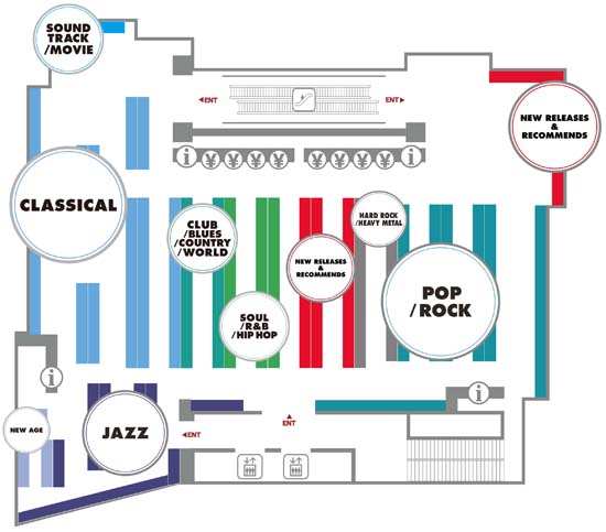 ■POP/ROCK・SOUL/HIP HOP・HARD ROCK/HEAVY METAL・CLUB・BLUES/COUNTY・WORLD・CLASSICAL・JAZZ・NEW AGE・SOUNDTRACK/ MOVIE すべての洋楽ジャンルの CD、映像作品をワンフロアに統合。