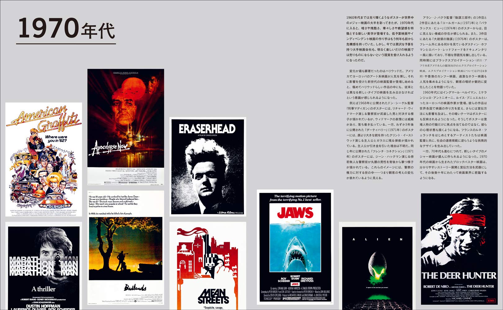 映画が生まれたのは1895年。リュミエール兄弟が撮影・映写の複合機「シネマトグラフ」を発明したことから始まる。一方、ポスターという宣伝媒体が生まれたのはそのわずか10年前のこと。本書では、現在でもいまだなお作り続けられる『映画ポスター』にスポットを当て、時代の変遷とともにその歴史を振り返える。ポスターデザインを手がけたアーティストやスタイル、映画的なムーヴメント、政治、イデオロギーなどの影響によって、映画ポスターにどんな変化がもたらされたのか? 当時の時代背景とともに紐解いていく。