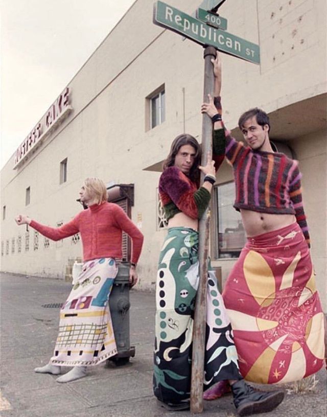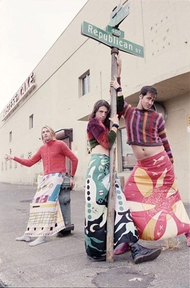 Nirvana Dressed Up in Woman Clothes for Mademoiselle Magazine (1993) [Photos by Stephane Sednaoui]