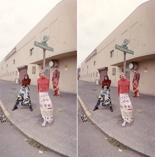 ニルヴァーナ(Nirvana)。米国の女性誌マドモアゼルの1993年11月号のために、ニルヴァーナのメンバー3人は女性向けの服を着てポーズをとっています。さまざまなビンテージ写真を紹介しているサイトVintage Everydayでは、このフォト・セッションからの写真22枚を特集紹介しています。