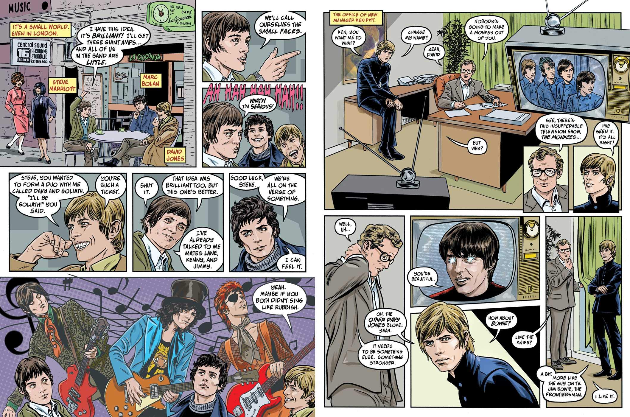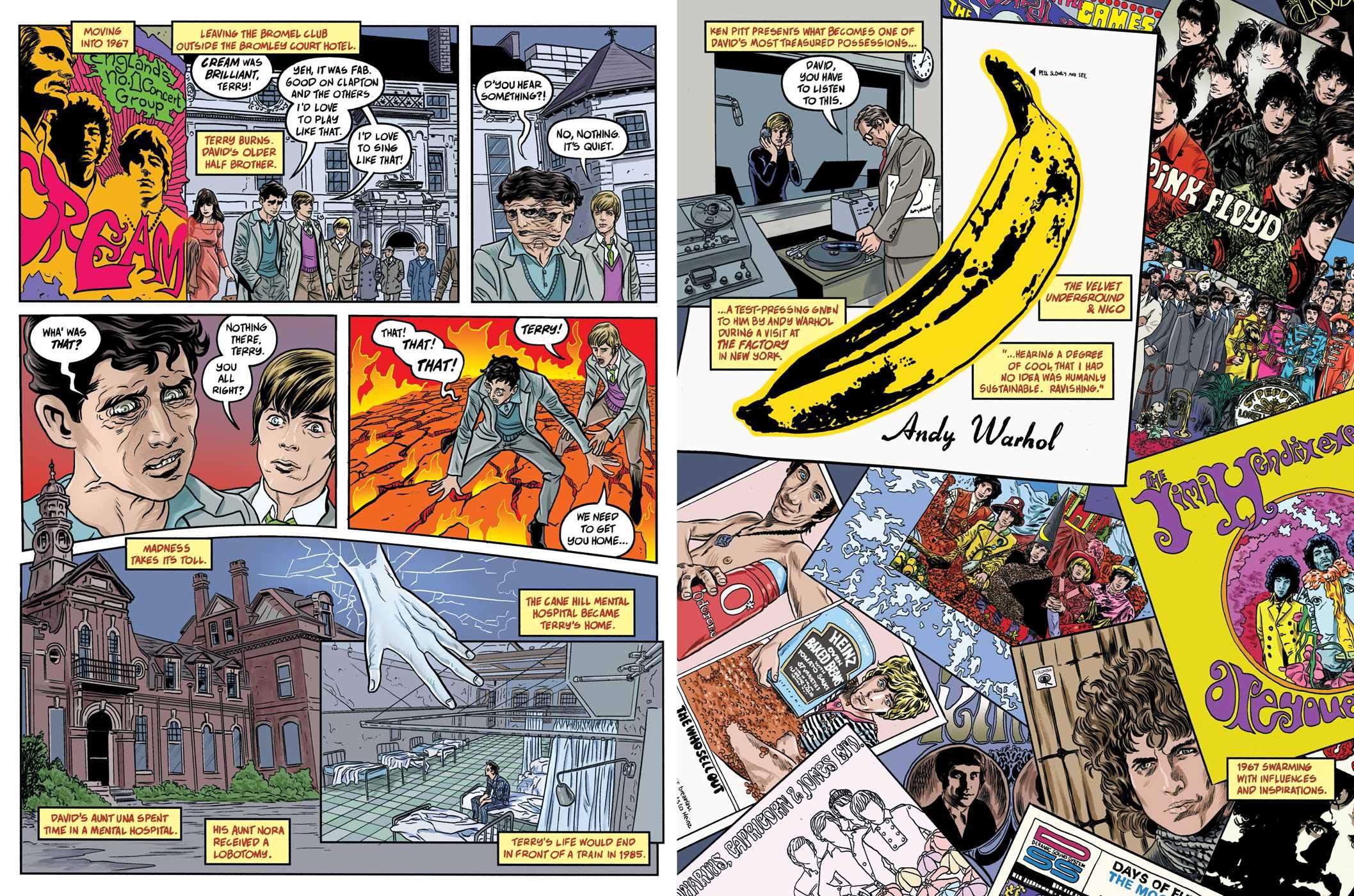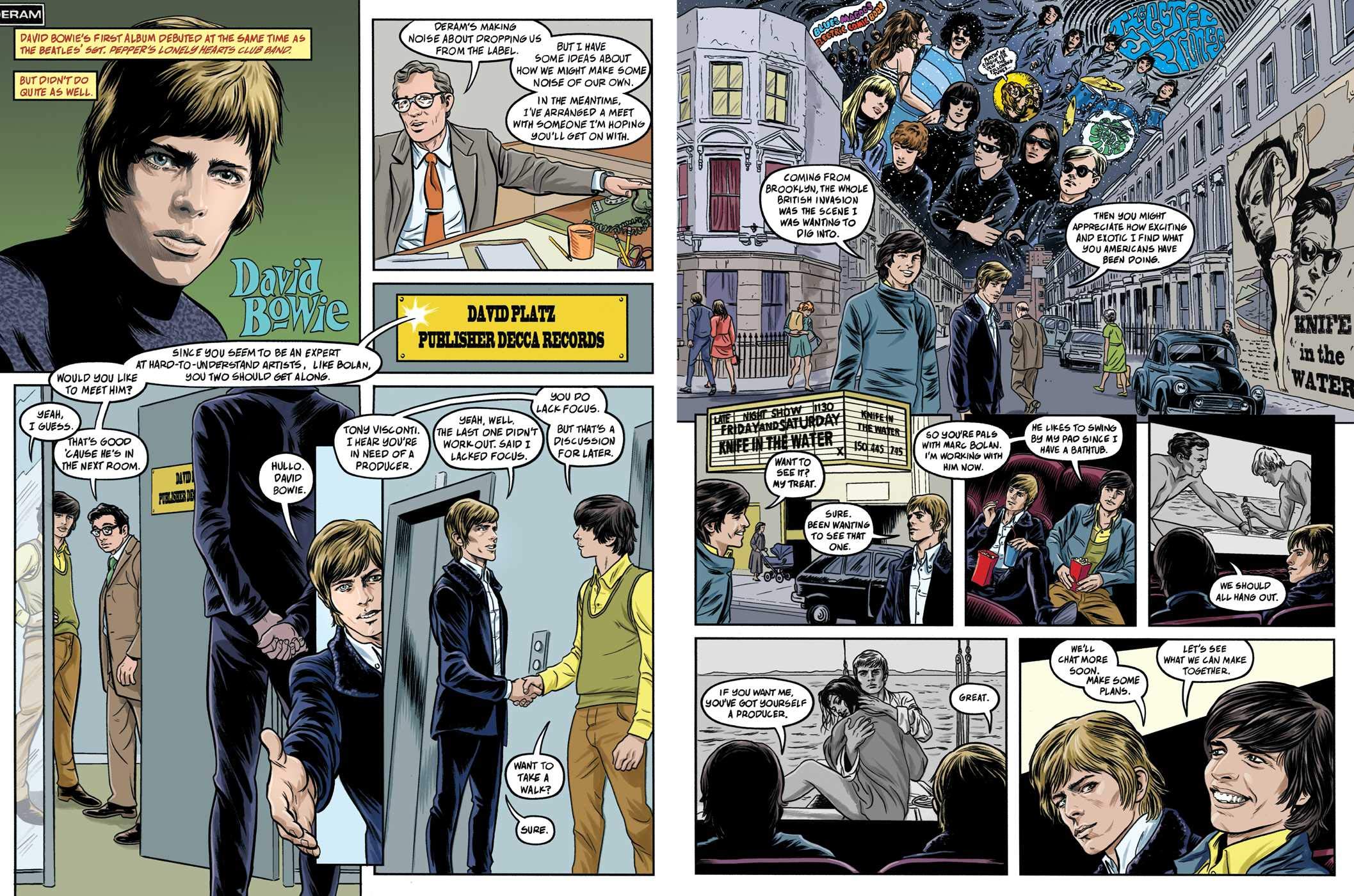 計160ページのグラフィック・ノベルでは、歴史に忠実なレコーディング・セッションやライヴを描写する一方で、彼の分身であるジギー・スターダストとボウイが宇宙で会話するシーンも含まれています。