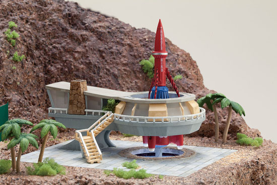 島を覆う岩板(外装)をはずすと、国際救助隊の基地が出現。各施設は内部まで精巧に組み上げられている。