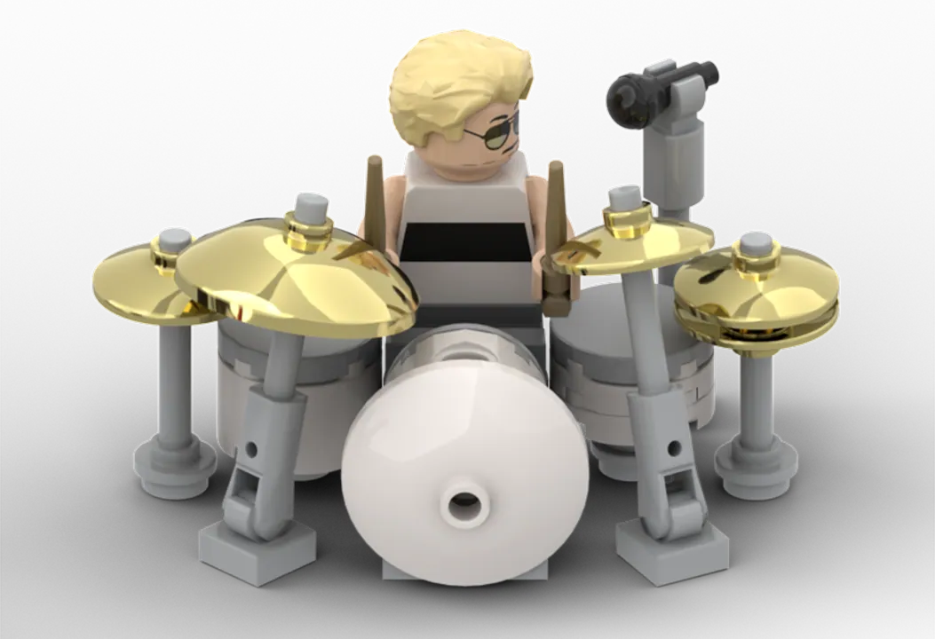 ロジャー・テイラー(Roger Taylor)にはフルドラムセットとドラムスティックを、