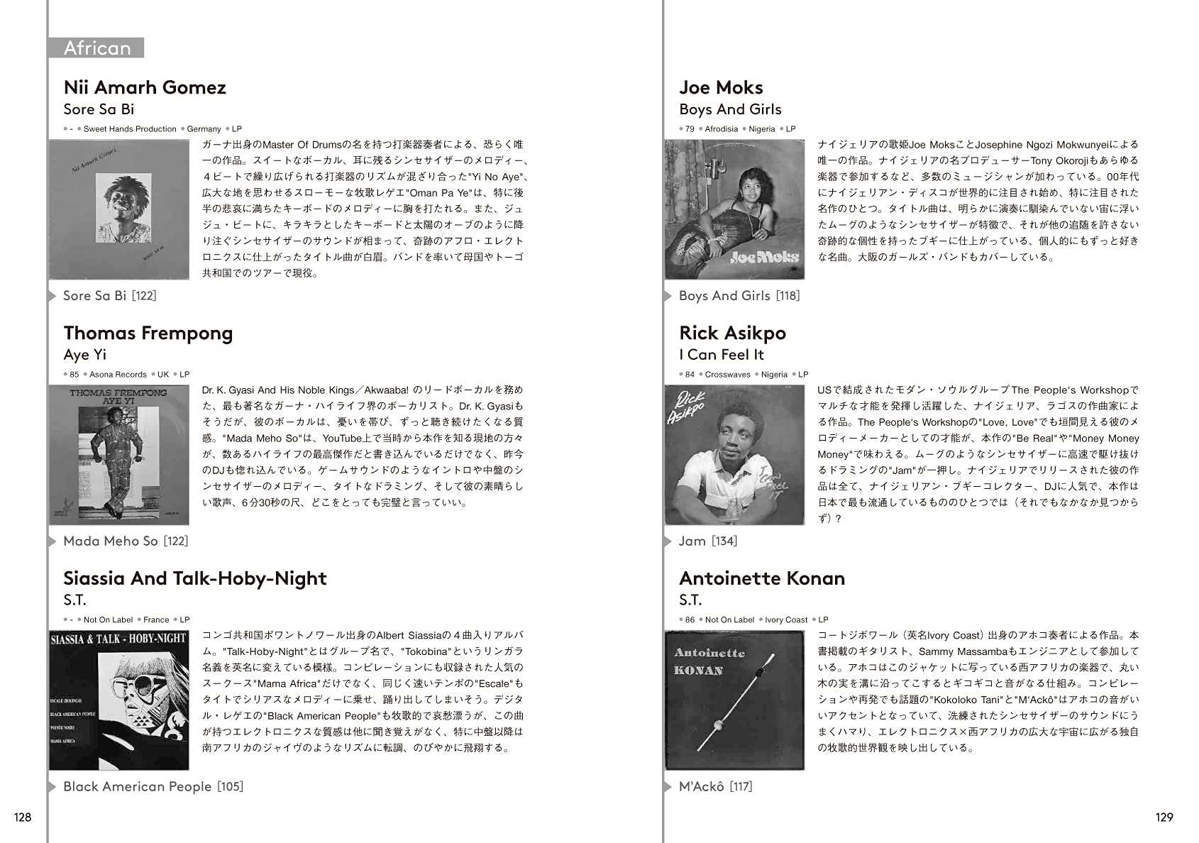 DJでもある著者が選ぶ、世界の約500枚をジャケット付きで掲載。ゲストチョイスも含め、全約600枚!