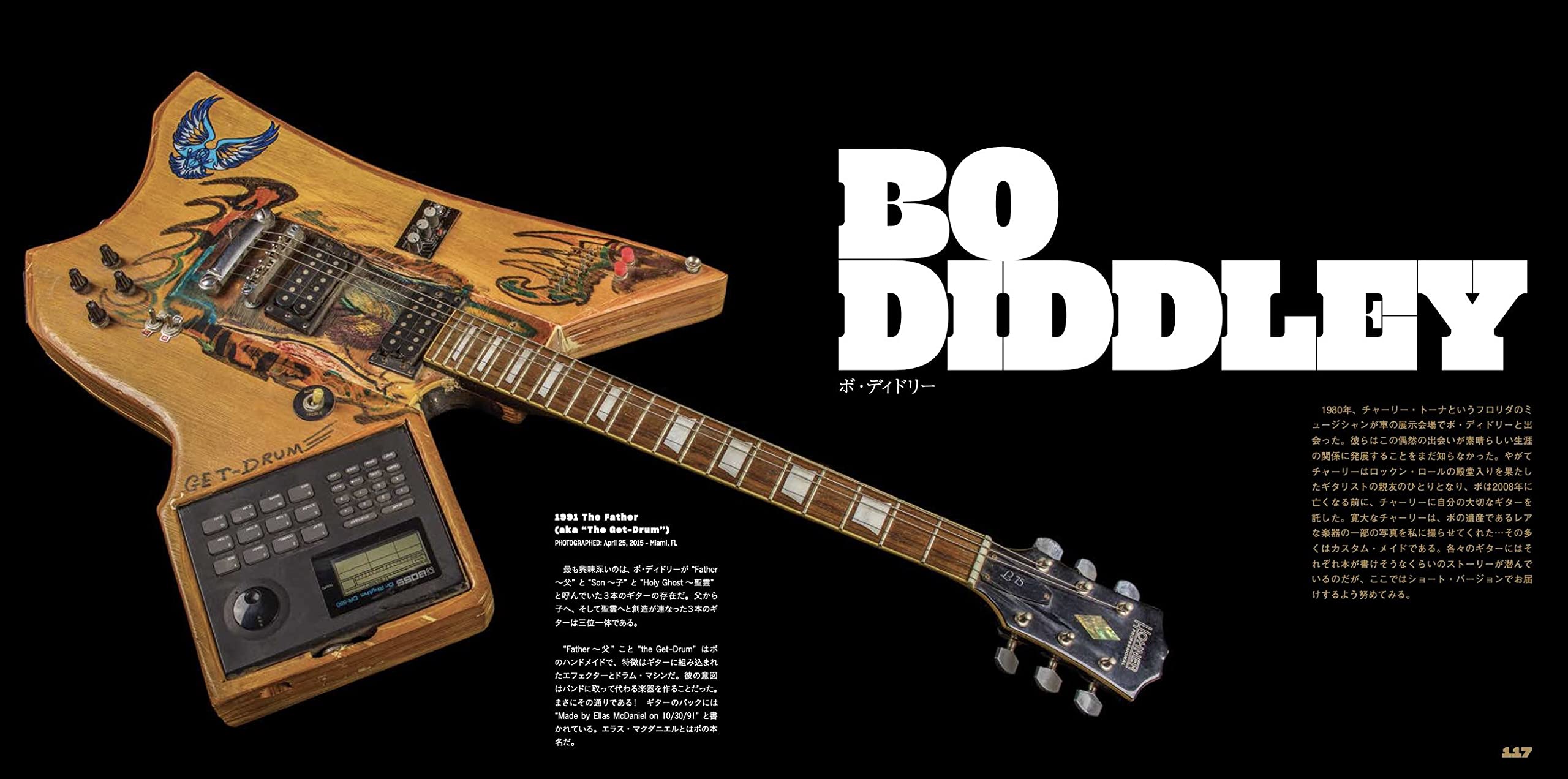 憧れのミュージシャンたちのギターやベースを28cm×28cmの大きな判型で堪能
