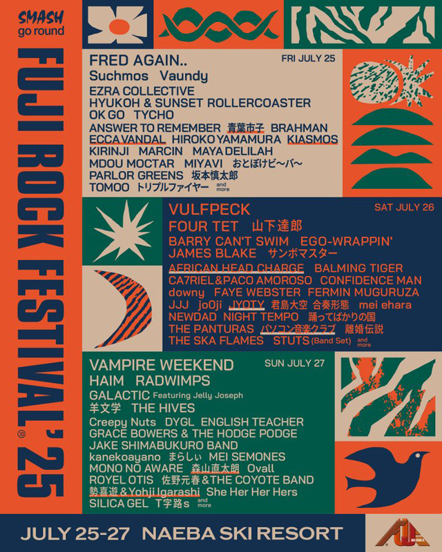 <FUJI ROCK FESTIVAL'25>は第3弾ラインナップを発表。AFRICAN HEAD CHARGE、森山直太朗、勢喜遊 ほか新たに8組の出演者が決定しています。
