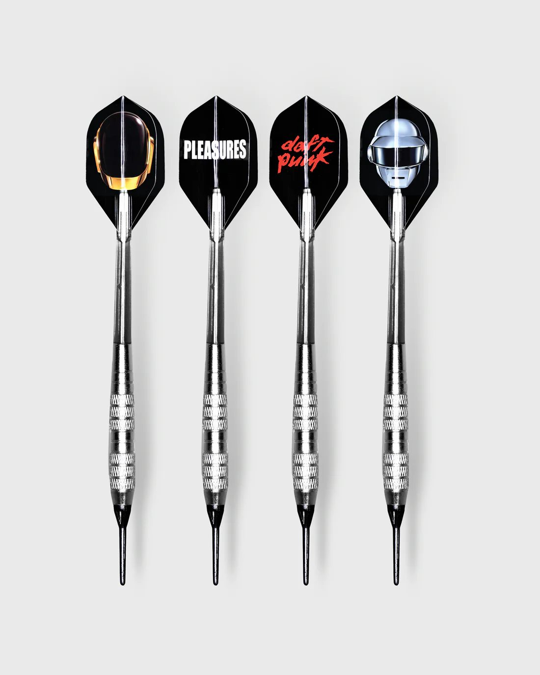 のヘルメットでサッカーをしたいアナタに朗報です。ロサンゼルス発のストリートブランド「プレジャーズ」はダフト・パンクとのコラボレーションコレクションを発表しました。Tシャツ、ジャケット、ショートパンツなどもありますが、中にはダフト・パンクのヘルメットを模したサッカーボールやブックエンド、ロゴ入りダーツボードなどもあります。