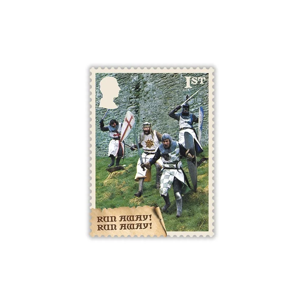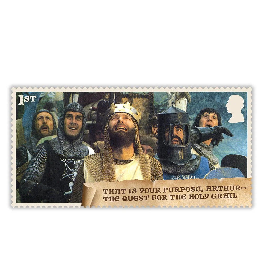 さらに4枚は、1975年の映画『モンティ・パイソン・アンド・ホーリー・グレイル』の50周年を記念したもので、同作の象徴的なシーンが採用されています。