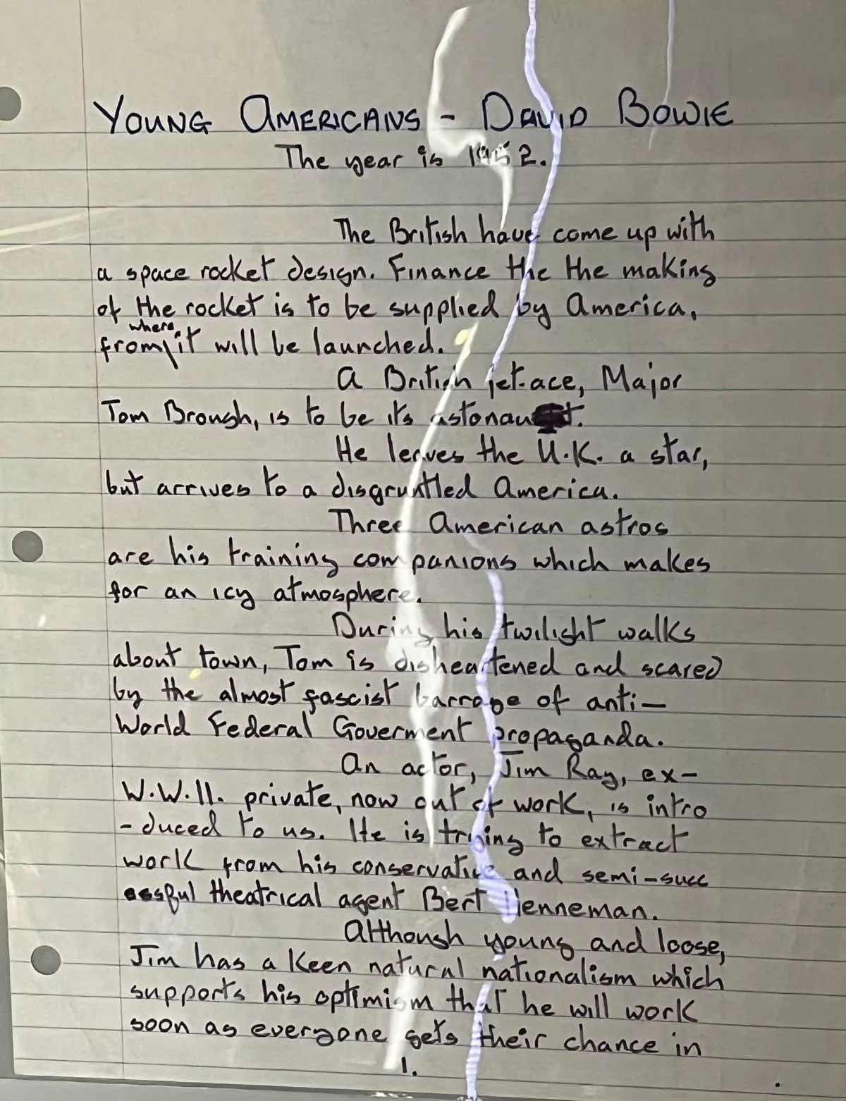 英The Mirror紙によると、『デヴィッド・ボウイ・センター』の中には、『Young Americans』という映画の手書きの企画書があります。