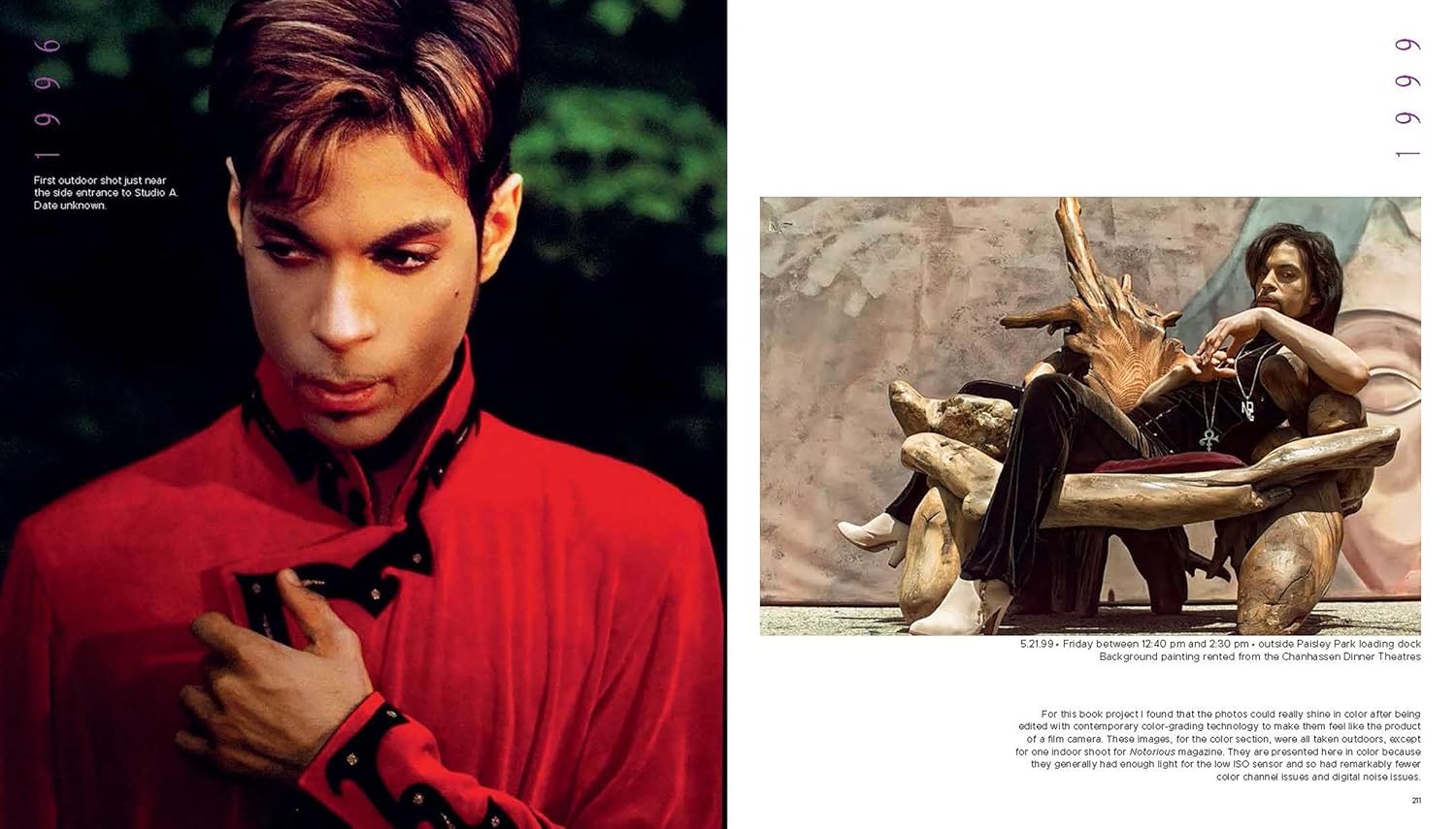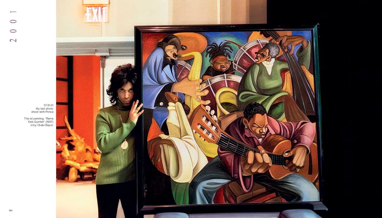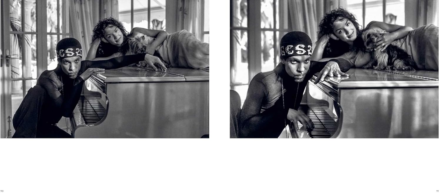 本書に掲載される写真の多くはここで初めて公開されるものです。ペイズリー・パークでの姿、マルベージャの陽光あふれる自宅での様子、スタジオでの仕事風景、ポートレート撮影の瞬間、最初の妻マイテ・ガルシアや愛犬ミアと過ごす静かな優しさに満ちた瞬間など、プリンスの極めて稀な姿を捉えています。