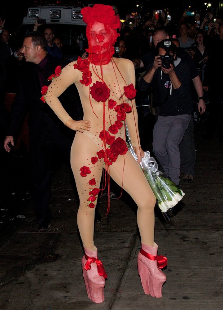 レディー・ガガの最新衣装が話題に、バラと肌色全身タイツ?