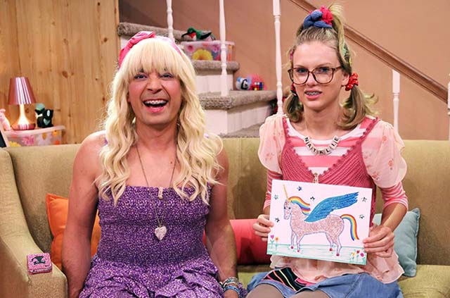 テイラー・スウィフトがティーンエイジャーのオタク少女ナタリーとして米TV番組のコントに出演