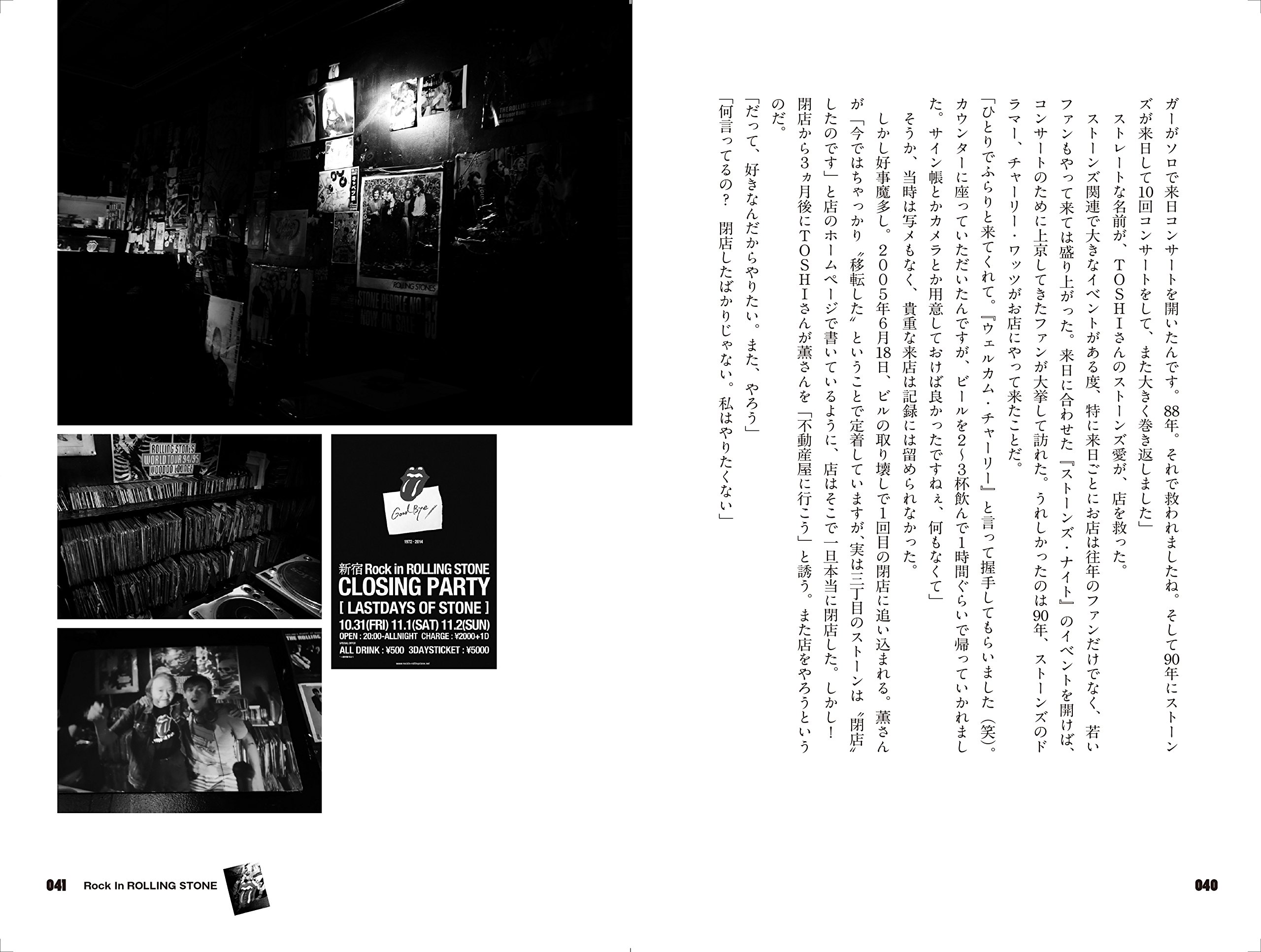 この本は単なるロック・バー・ガイドではなく、店主に焦点を当てた「ロック・バー物語」。その人生。その個性。その姿勢。笑いと涙。喜びと悲しみ。苦労と楽しさ。その端々からロックが聞こえてくるライフ・ストーリーを伝えたい。