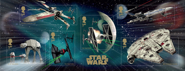 『スター・ウォーズ』の切手が英国のロイヤル・メールから発行決定。ダース・ベイダー、ヨーダ、ハン・ソロなどのお馴染みのキャラから、レイなどの新キャラクターまで計12種の絵柄がセットで発売。またXウイングやミレニアム・ファルコンなど6種の絵柄をセットにした切手も発売されます。リリースは英国で10月20日。