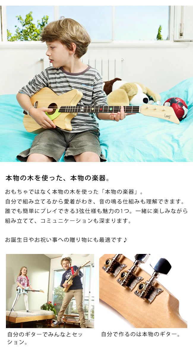 自分で組み立てるD.I.Yギターが話題に。アメリカ発のD.I.Y.ギター、ルーグ(Loog)はおもちゃではなく、本物の楽器。環境に配慮した木(サスティナブルウッド)を使った本格3弦ギターで、アコースティックとエレクトリック(6色)の2タイプがあります。プロモーション映像公開中