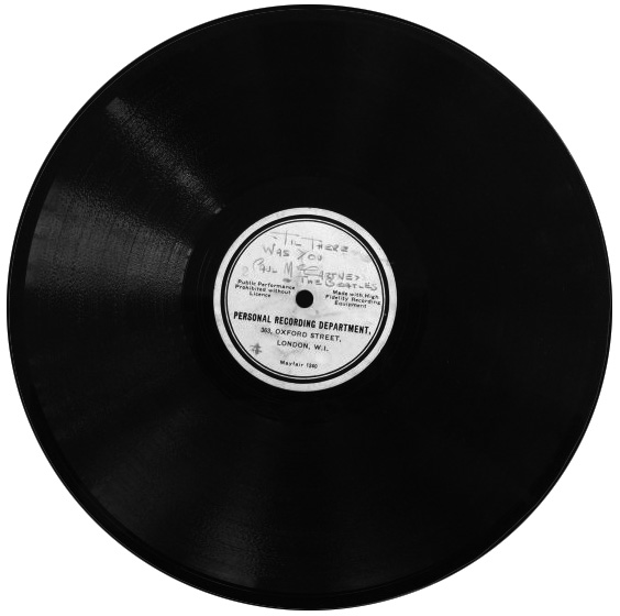 この「聖杯(Holy Grail)」と呼ばれる10インチ・レコードは、ビートルズがレコード会社と契約を結ぶ前に会社側に提出したとされるもので、1962年にHMVロンドン・オックスフォード通り店のパーソナル・レコーディング・デパートメントで1枚のみ作られたものとのこと。「Hello Little Girl」「Till There Was You」の2曲が収録されています。