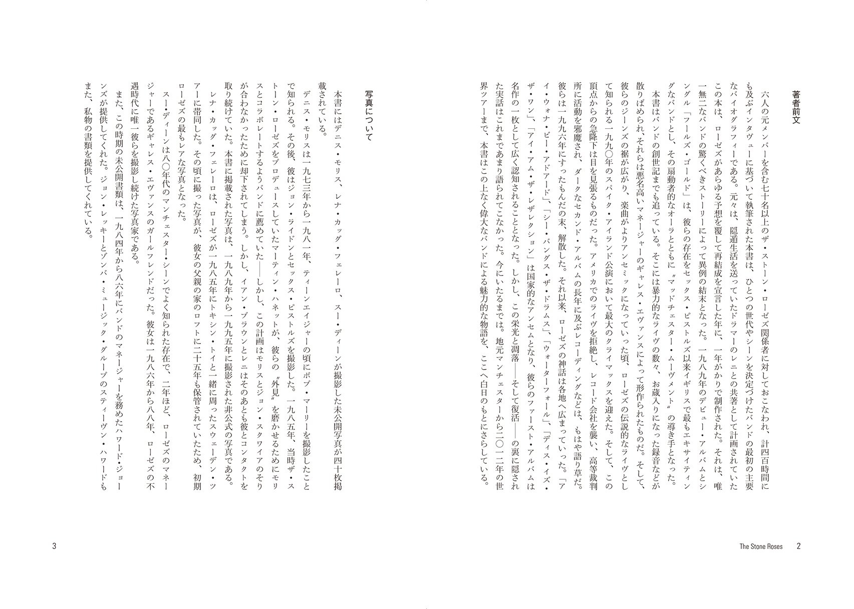 本書は、ストーン・ローゼズのドキュメンタリー映画『The Stone Roses: Made Of Stone』の元ネタとしても知られる彼らの伝記本の邦訳版で、メンバーのレニとマニの協力を得て著者サイモン・スペンスが400時間以上もの取材やリサーチをして執筆された伝記本です。これまでローゼスのバイオグラフィに迫った本があまり出版されていないために謎の多かった彼らのバンド内情や関係性、意外なエピソード、ちょっとした暴露話などがメンバーによって多数語られています。