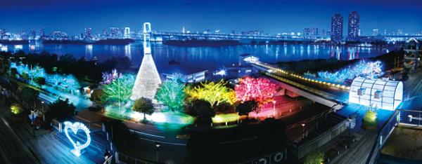 また同時開催特別イベントとして<お台場イルミネーション「YAKEI」×デヴィッド・ボウイ presented by e-onkyo>も開催されます。これはデヴィッド・ボウイの楽曲にあわせて高さ約20m、幅10m、生木としては都内最大級の「台場メモリアルツリー」を中心にした全長約200mに広がる樹木を、約22万球の光が変化し動き出すイルミネーションショーです