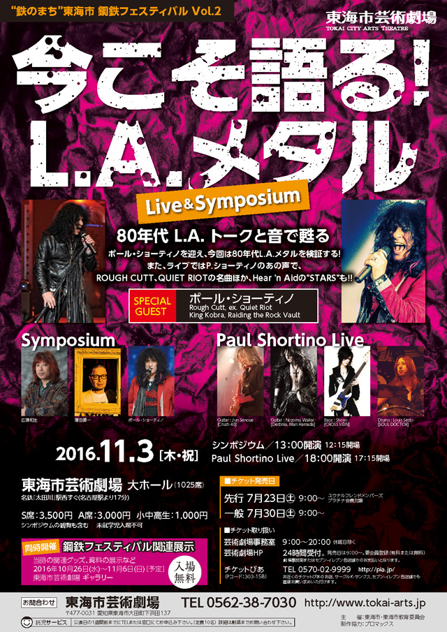 ポール・ショーティノを迎えて80年代L.A.メタルを検証する<鋼鉄フェスティバルVol.2>が、“鉄のまち”愛知県東海市の東海市芸術劇場 大ホールにて11月3日(木・祝)に開催されます。