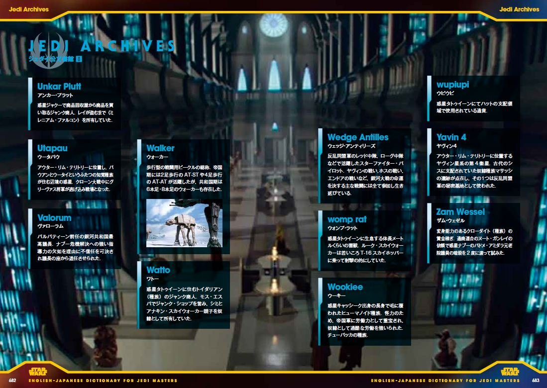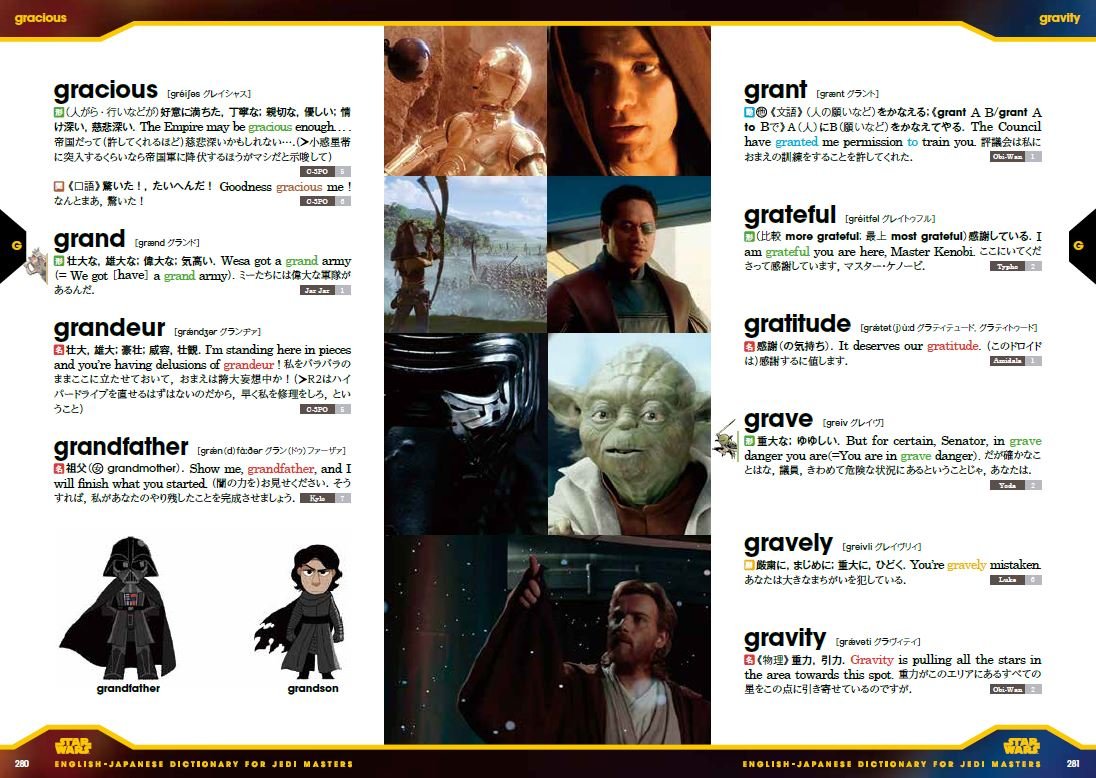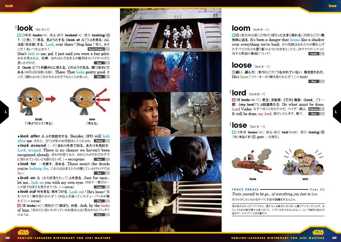 2014年の「ジェダイ入門者編」、2015年の「ジェダイ・ナイト編」に続く第3弾では、『フォースの覚醒』を含む「スター・ウォーズ」映画全7作に登場する全英単語を網羅(※固有名詞や異星人言語を除く)。その数、約3100語で、ページ数も704ページという“マスター”の名にふさわしい内容もボリュームとなっています。