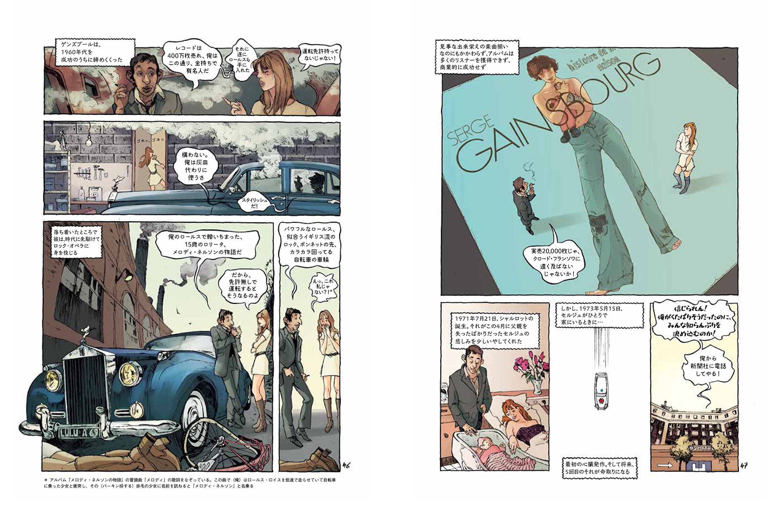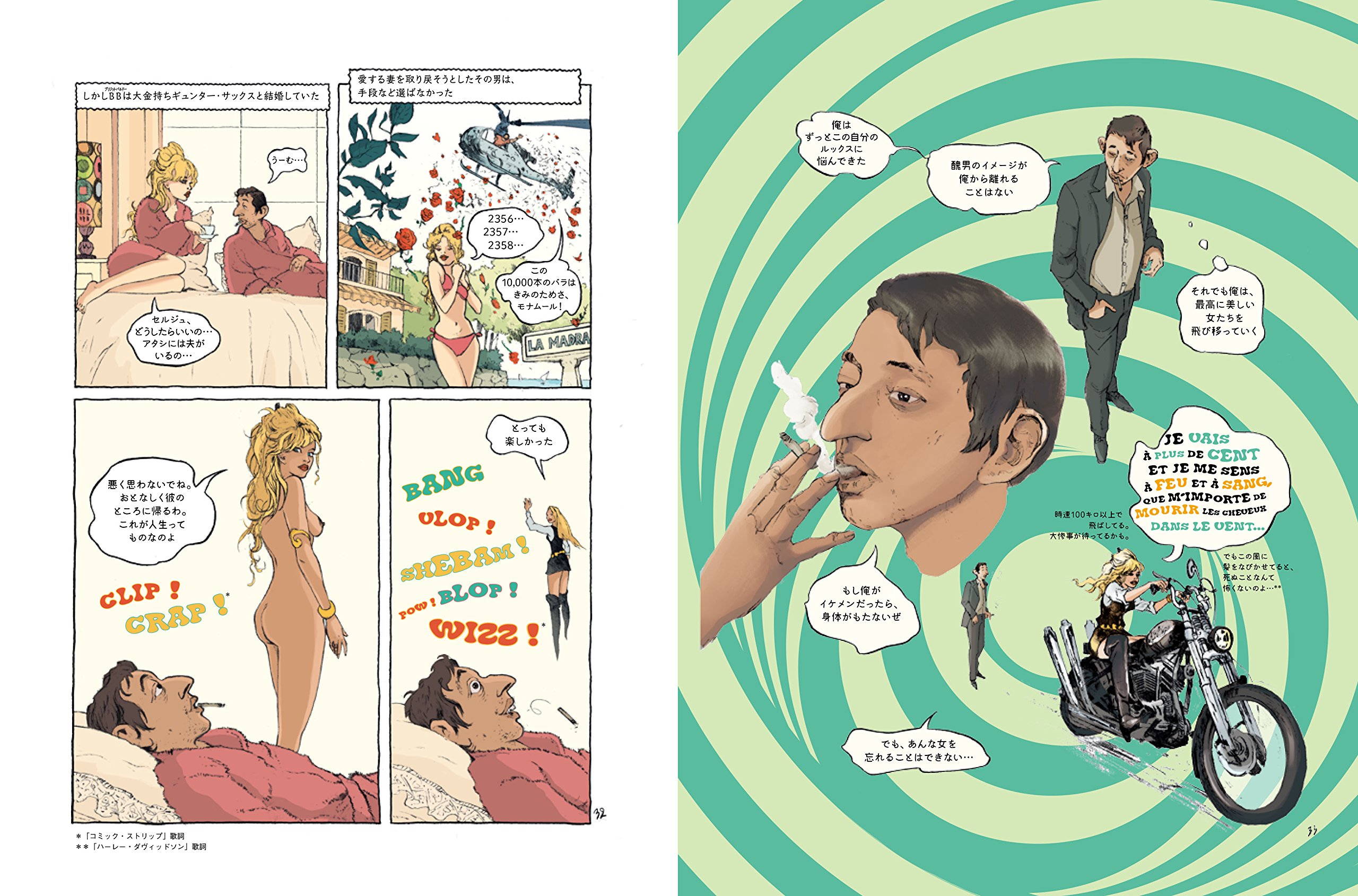 ジェーン・バーキン、ブリジット・バルドー、フランス・ギャル、アンナ・カリーナ、ヴァネッサ・パラディなど、魅力的な女性たちに彩られつつも、絶望と孤独に生きた、不良フランス人の生涯を、極上のバンドデシネ(フランスでは9番目のアートとされる)で描いた傑作!