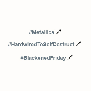 の新アルバム発売を記念して、ツイッター絵文字が実施されています。#metallica #blackenedfriday #hardwiredtoselfdestruct というハッシュタグ3種のいずれかをつけてツイートすると絵文字も表示されます。