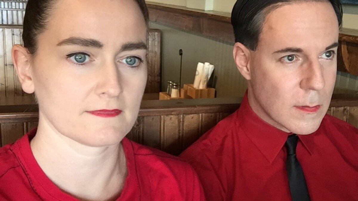 結婚式はフロリダ州のタンパにあるカフェで行われ、2人はもちろんのこと、式の出席者たちも皆、赤いシャツに黒いネクタイ姿で参加しています(マネキンも)。式では2人を祝福するクラフトワーク楽曲のDJプレイも披露されたそうです。