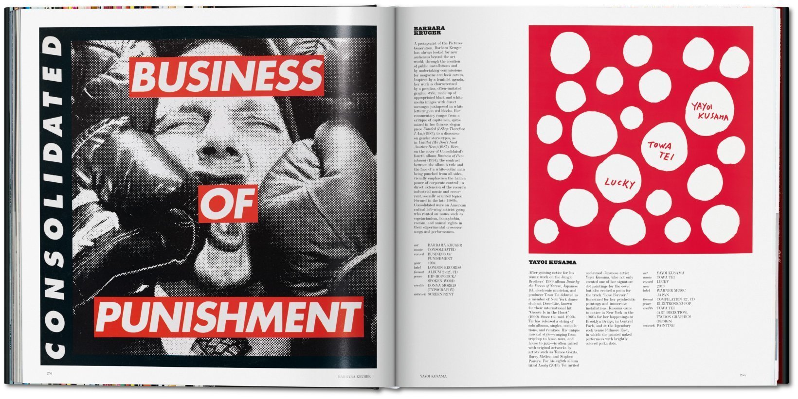 本書にはアンディー・ウォーホル、キース・ヘリング、ジャン=ミシェル・バスキア、バンクシー、ロバート・メイプルソープ、ゲルハルト・リヒター、ダミアン・ハースト、サルバドール・ダリ、ロイ・リキテンスタインなどが手がけた作品を掲載。また、キム・ゴードン、シェパード・フェアリー、クリスチャン・マークレー、アルベルト・ウールン、レイモンド・ペティボーンらが、アーティストとミュージシャンの協力関係に語るインタビューなども掲載されされます。