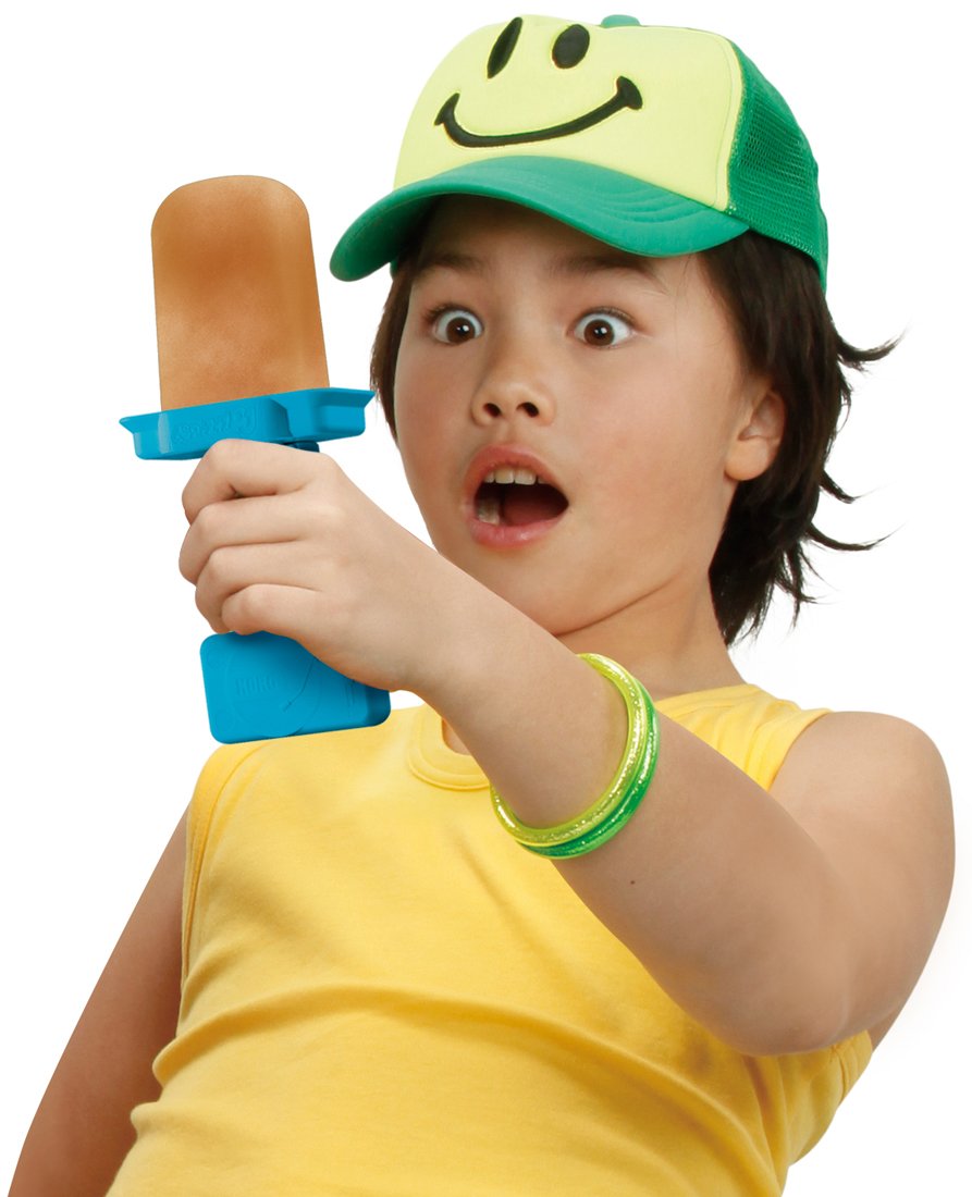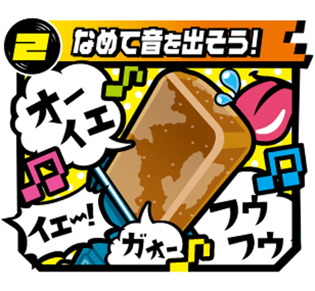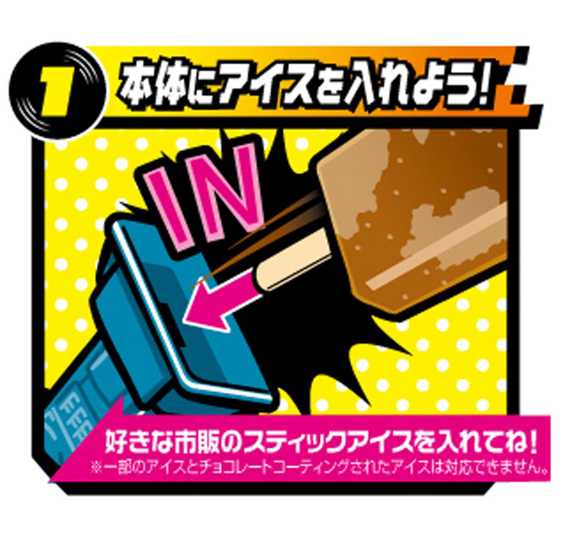『ペロっとアイスDJ』は、市販のスティックアイスをセットし、本体グリップ裏にある「通電スポット」に触れながらアイスをなめると音が鳴る仕組み。
