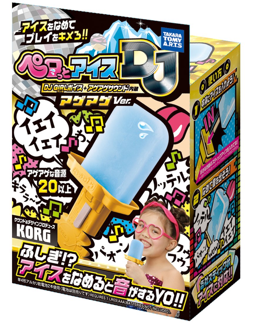 アイスをなめると音がするおもちゃ『ペロっとアイスDJ』がタカラトミーアーツから発売中。内蔵サウンドと本体デザインを電子楽器メーカーKORGがプロデュースしています。