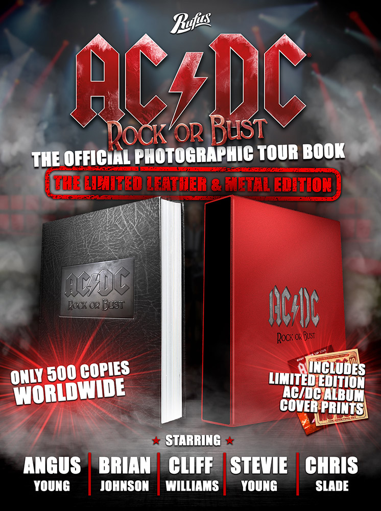 出版元のRufus Stone Limited Editionsの公式サイトでは、限定エディションのプレオーダーを受け付けており、今予約する(8月17日まで)と本の裏にアナタの名前が記載される予定。 ●Rufus Stone Limited Editions公式サイト内 『Rock Or Bust: The Official Photographic Tour Book』品ページ http://www.rufuspublications.com/rufusbooks/ACDC/acdclimited