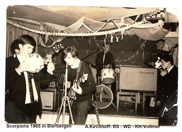 スコーピオンズ(Scorpions)の結成当時(1965年または1966年)のレア写真8枚を、さまざまなビンテージ写真を紹介しているサイトVintage Everydayが特集紹介しています。メンバーはルドルフ・シェンカー(vo/g)、カール・ハインツ・ヴォルマー(g)、ウォルフガング・ズィオニー(ds)、ヨアヒム・キルヒホッフ(b)