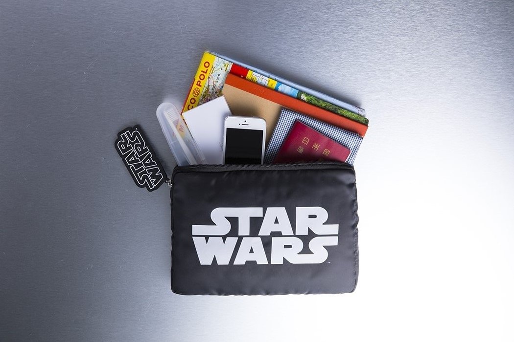 特典のポーチは大きめサイズでガジェットケースとしても使用可能。本誌でしか手に入らないスター・ウォーズの便利なアイテムに仕上がっています。