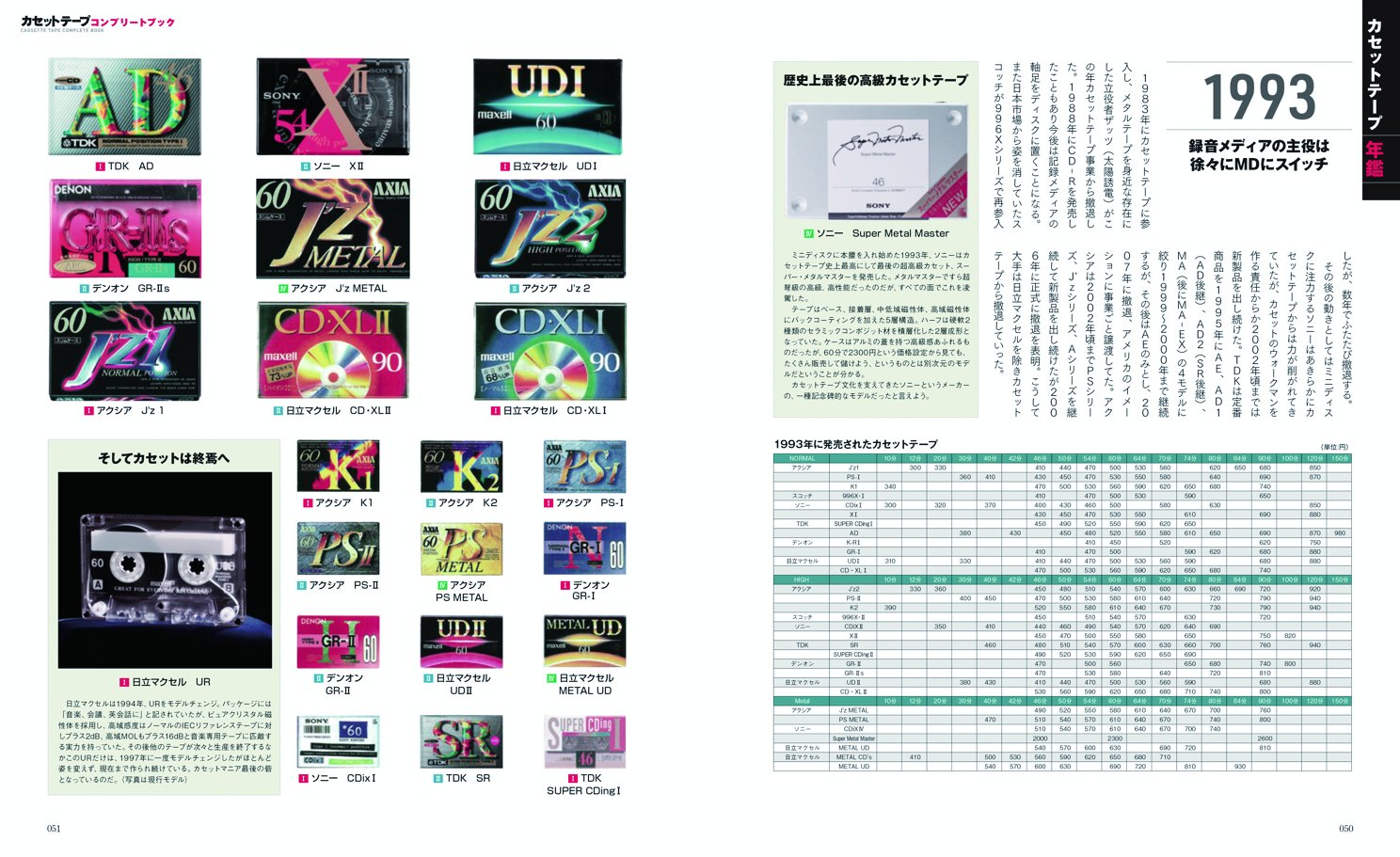 『カセットテープ年鑑』では1971〜1993年に国内で販売されていた主要なカセットテープを網羅。