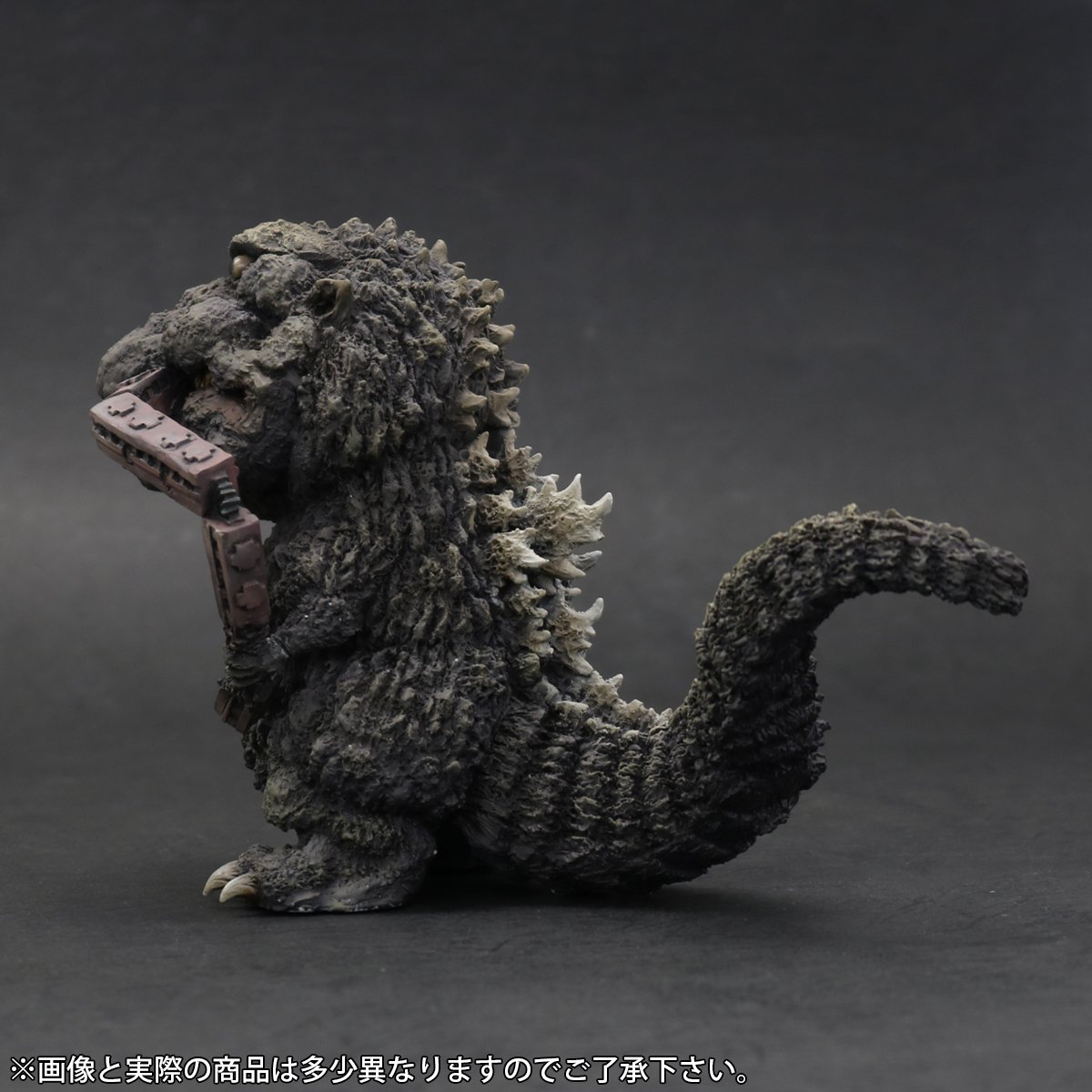 今回の『デフォリアルシリーズ ゴジラ 1954』のポージングは劇中でも印象的な電車を咥えた状態での立体化。コミカルな可愛さの中に初ゴジ特有の威圧感も併せ持つ造形が特徴です。全高約130mm。原型プロデュースは怪物屋。
